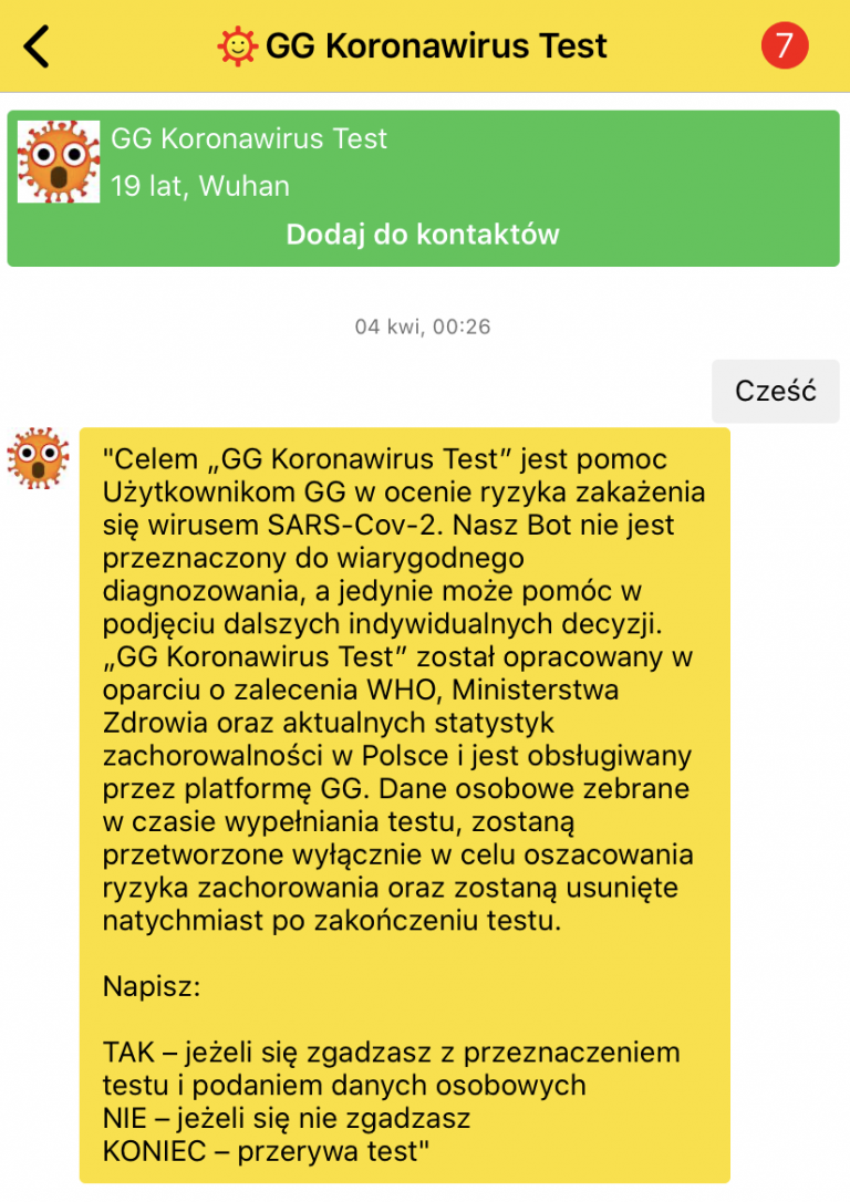 Teraz GG poinformowało na swoim blogu o uruchomieniu specjalnego bota, który powstał we współpracy z WHO i Ministerstwem Zdrowia.