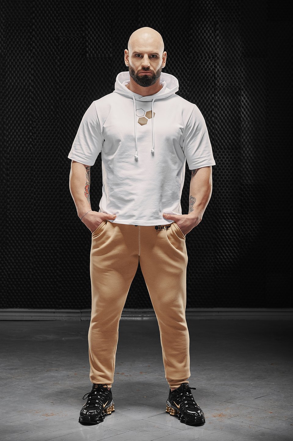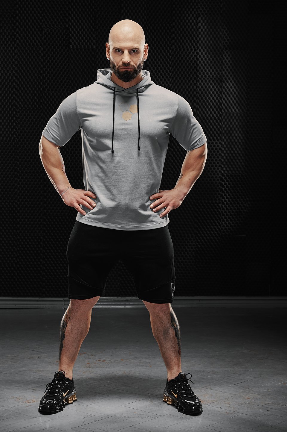 – W tej kolekcji są zarówno klasyczne ubrania sportowe, takie jak bluza czy dres, jak i innowacyjne produkty. Jednym z nich jest na przykład koszulka z kapturem, która jest zrobiona z materiału podobnego do tego, który jest stosowany w bluzach. To odpowiedź na potrzebę, którą zauważyliśmy wśród trenujących na siłowni. Słuchawki na uszach i kaptur na głowie gwarantują im pełne odizolowanie się od otoczenia i koncentrację na treningu. My dodatkowo, za sprawą krótkiego rękawa, zapewniamy im wygodę – zdradzają Olga Nitka oraz Tomasz Widłak, autorzy kolekcji.