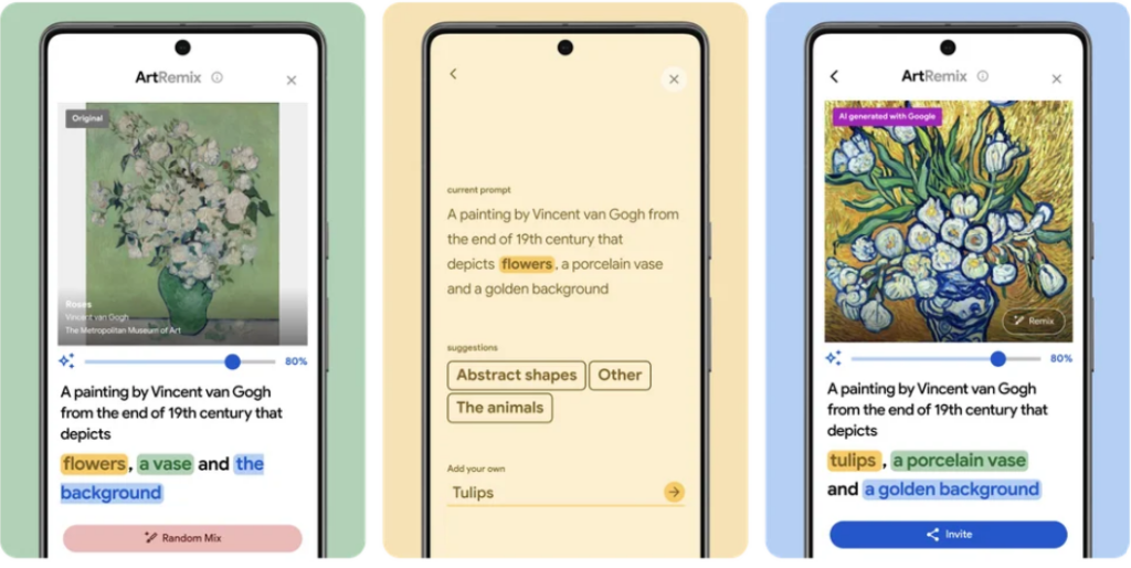 Google przygotował coś także dla tych, którzy od robienia selfie wolą „grzebanie” w promptach. Aplikacja Art Remix, dostępna już na całym świecie w zakładce „Graj” Google Arts & Culture, zachęca do edycji podpowiedzi wysyłanych sztucznej inteligencji. W ten sposób możesz zmieniać gotowe, dobrze znane obrazy.