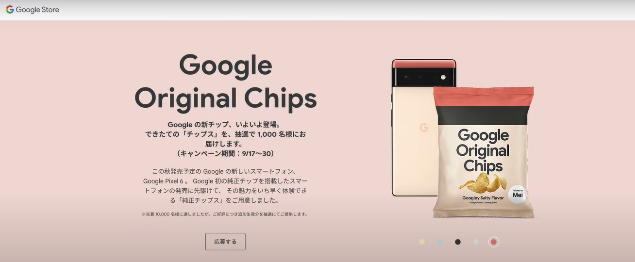Google Original Chips to zwyczajne solone chipsy ziemniaczane o smaku „Google Salty”. Opakowania chipsów zostały zaprojektowane w tym samym stylu i takich samych wersjach kolorystycznych, co promowane smartfony z serii Pixel 6.