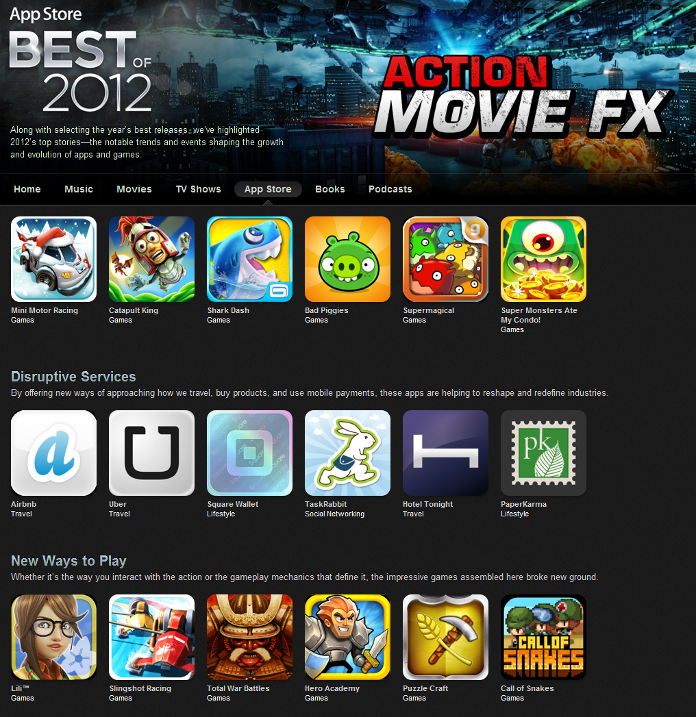 W 2012 roku w App Store przybyło ok. 120 tys. gier i aplikacji. Spośród nich Apple wybrało 70 najlepszych w kilku kategoriach. Gra "Puzzle Craft", stworzona przez polską firmę Ars Thanea Games, została doceniona w jednej z najważniejszych z nich: New ways to play.
