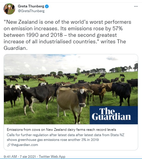 Aktywistka na rzecz klimatu – Greta Thunberg zarzuciła władzom Nowej Zelandii, że nie zrobiły nic w kwestii kryzysu klimatycznego. Dziewczyna uznała, że w rządzie nie ma ani jednego polityka, którego mogłaby wyróżnić jako osobę walczącą z postępującym kryzysem klimatycznym. Co więcej, Thunberg stwierdziła, że Nowa Zelandia to jeden z najgorszych na świecie krajów pod względem wzrostu emisji CO2. Jej zdaniem również premier kraju Jacinda Arrdern nie powinna być nazywana liderką klimatyczną.
