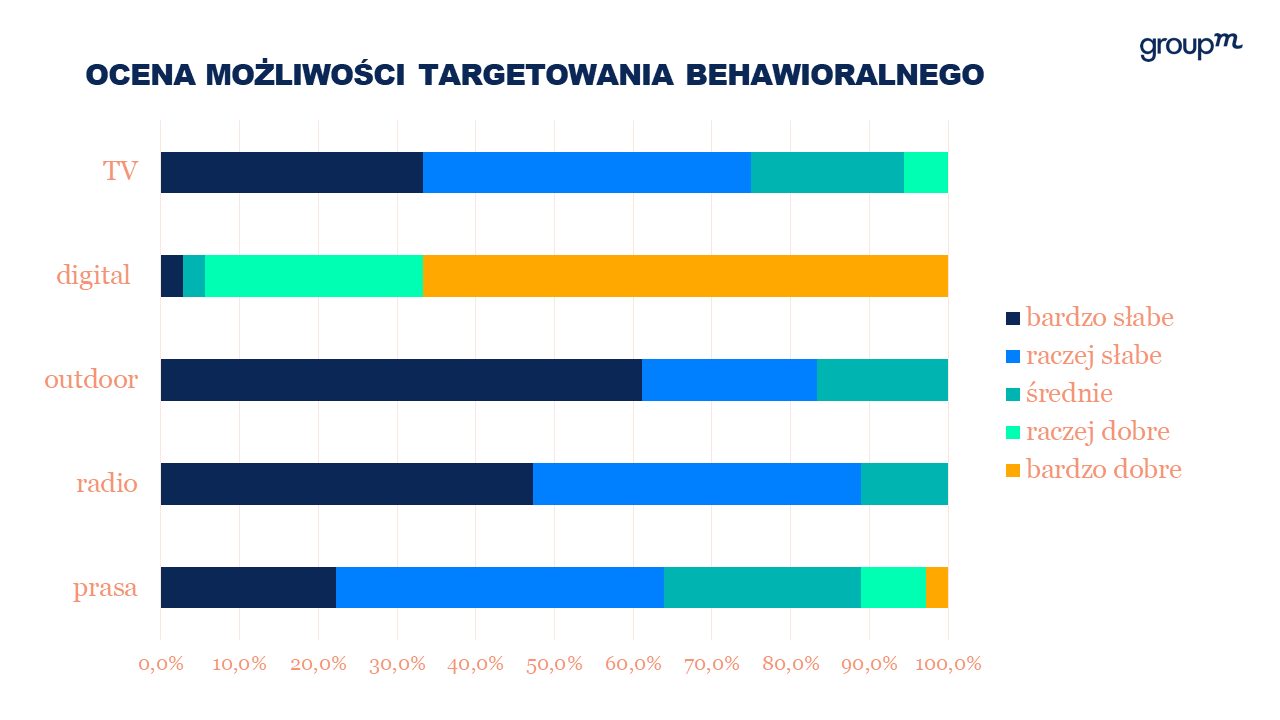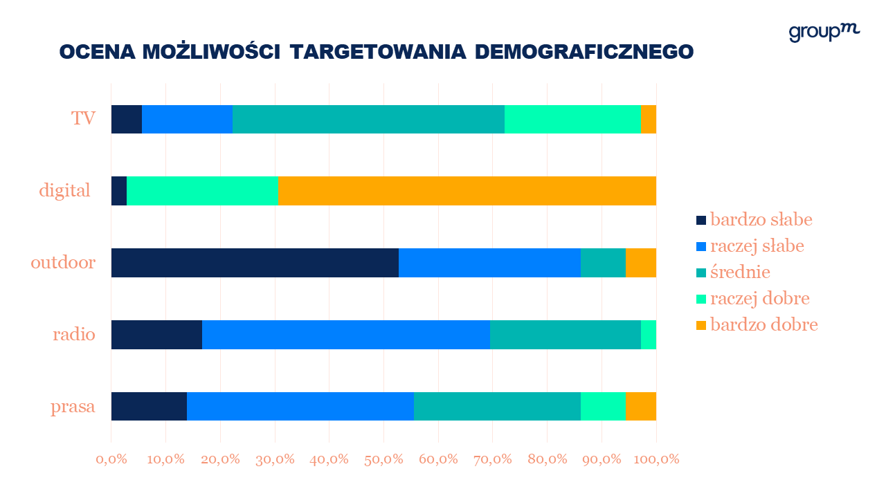 Reklamodawcy dość nisko ocenili aktualne możliwości targetowania kampanii TV, na tle innych mediów, przede wszystkim – cyfrowych.