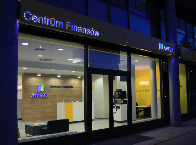 Wystrój placówek sieci Centrum Finansów Aviva charakteryzuje się nowoczesnym designem i oryginalną kolorystyką, zgodną z systemem identyfikacji wizualnej klienta. Projekt oznakowania pierwszych dziesięciu lokalizacji nowej sieci należącej do ubezpieczyciela został zrealizowany w ciągu kilku miesięcy.