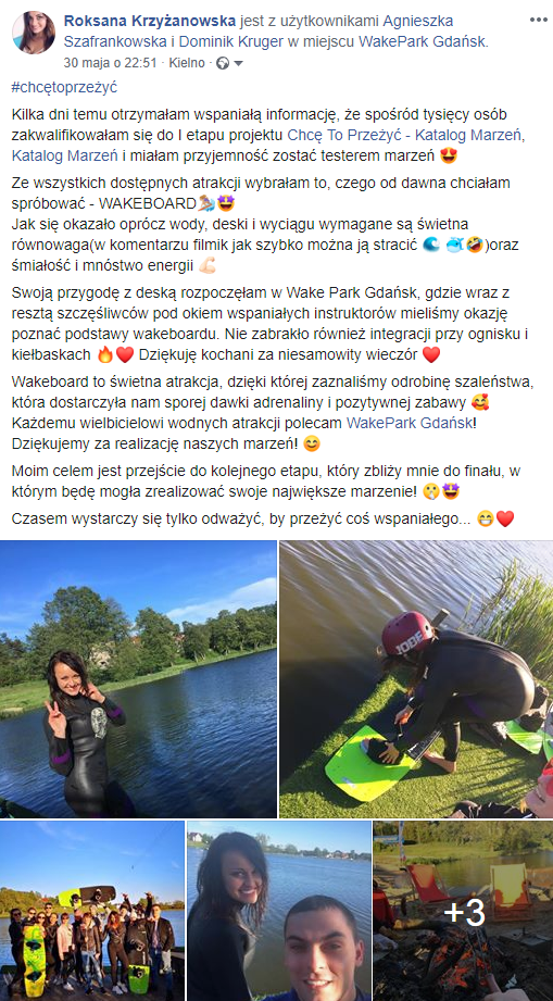 Następnie wybrane osoby (w tym roku jest ich aż 700) testują i relacjonują wybrane marzenia, dzieląc się wrażeniami w sieci. Tu liczy się zaangażowanie, kreatywność i jak najwięcej wzmianek w mediach społecznościowych. Koordynatorka akcji motywuje uczestników do działania, pomaga i buduje relacje.