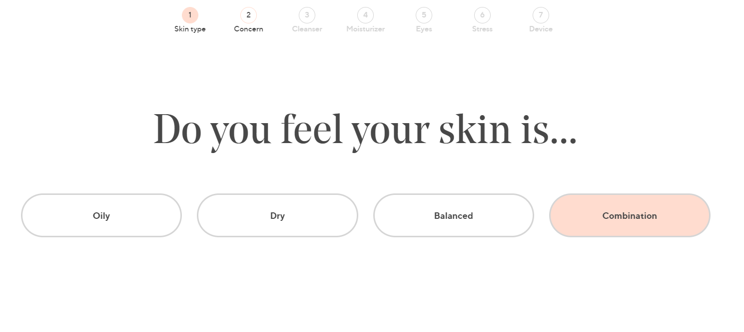 Dobrym przykładem jest sklep Murad, który przez serię pytań pomaga klientkom wybrać kosmetyk odpowiedni do ich cery.