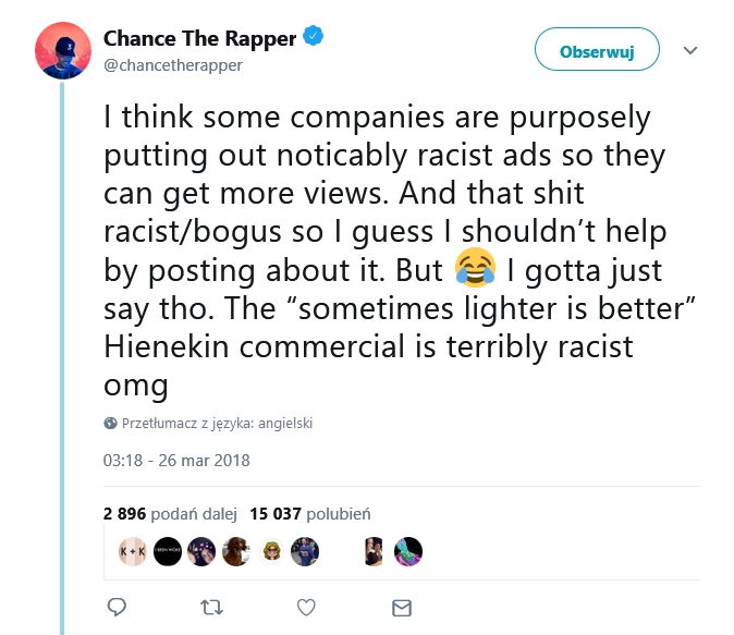Bardzo szybko kampanie skwitował raper Chance the Rapper, który na Twitterze napisał, że cała kampania jest „strasznie rasistowska”.