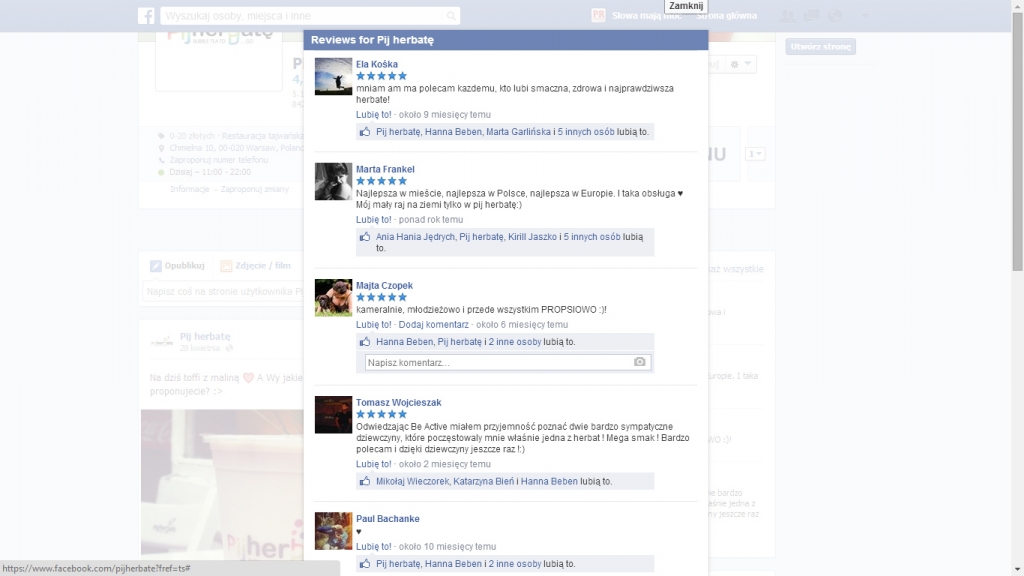 - wyrażane przez klientów opinie i publikowane zdjęcia stanowią element spontanicznego marketingu szeptanego i okazują się najlepszą promocję dla lokalu;