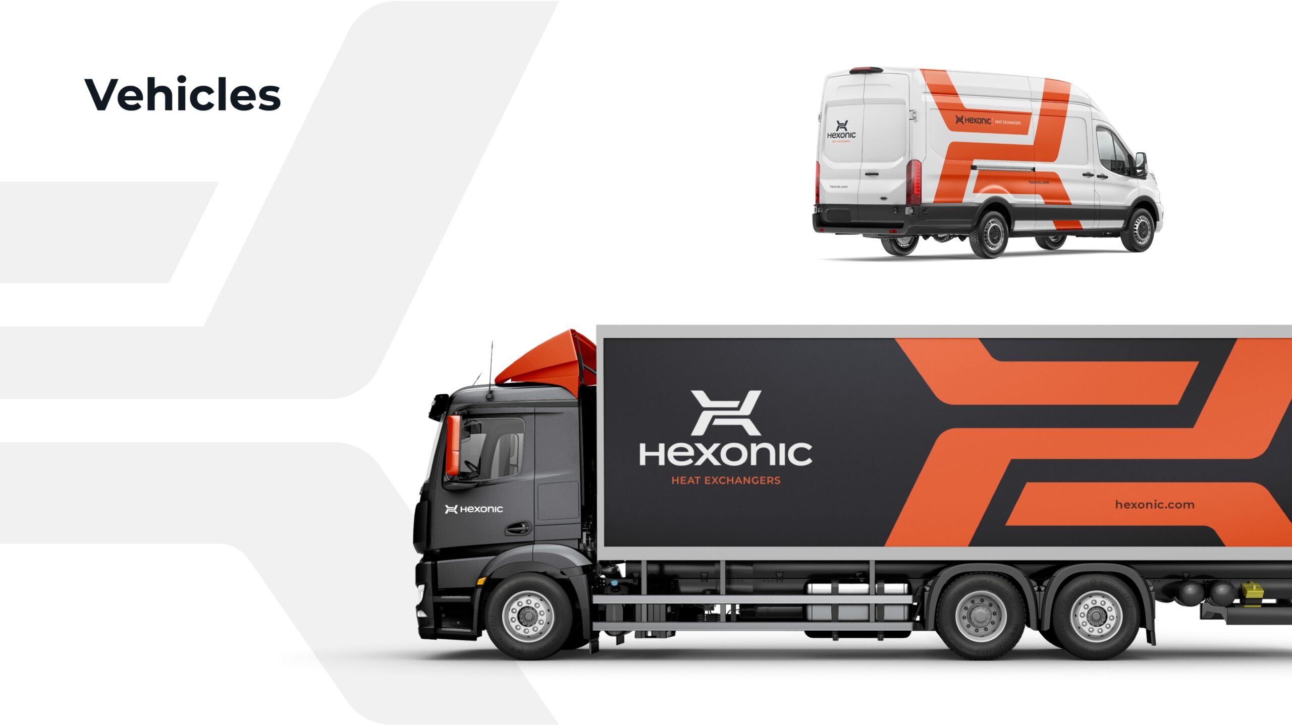Taką drogę przyjął DR w pracy nad nową identyfikacją – znalezienia kolorystyki, którą Hexonic mógłby dla siebie zawłaszczyć w kategorii, a także środków wyrazu, które mocno powiązałyby identyfikację wizualną z tym, co jest istotą tej branży – rozwiązaniami technologicznymi. Wybór padł na kolor pomarańczowy – wyrazisty, a jednocześnie naturalnie związany z tematyką temperatur. W identyfikacji Hexonic pełni rolę mocnego, widocznego akcentu pojawiającego się na czerni, bieli lub szarości.