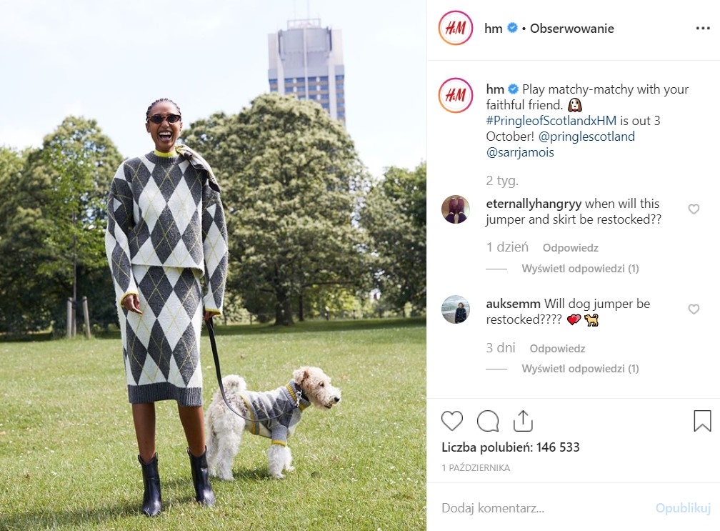 Niedawno do sklepów weszła nowa wspólna kolekcja marek H&M i Pringle of Scotland. Jak się okazało, oprócz iście jesiennych ubrań i dodatków, takich jak ciepłe swetry, czy szaliki oraz czapki, w kolekcji znalazły się również ubranka dla czworonogów. I to nie byle jakie, bowiem są one miniaturową wersją tych dla dorosłych!