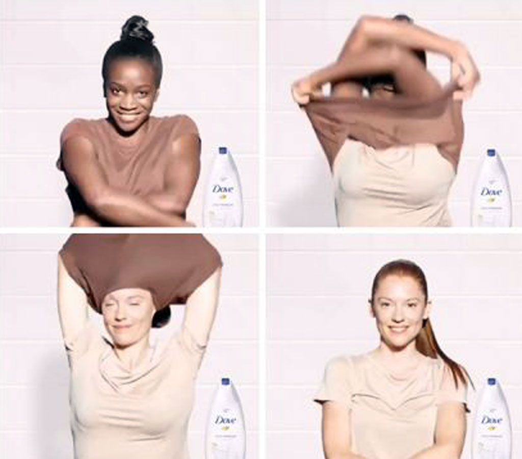Reklama przedstawiała ciemnoskórą kobietę, która po użyciu mydła Dove staje się biała…