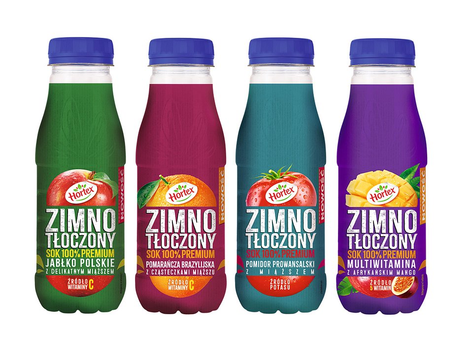 Nowa linia soków Zimnotłoczonych składa się z czterech smaków: Jabłko polskie, Multiwitamina z afrykańskim mango, Pomarańcza brazylijska oraz Pomidor prowansalski.