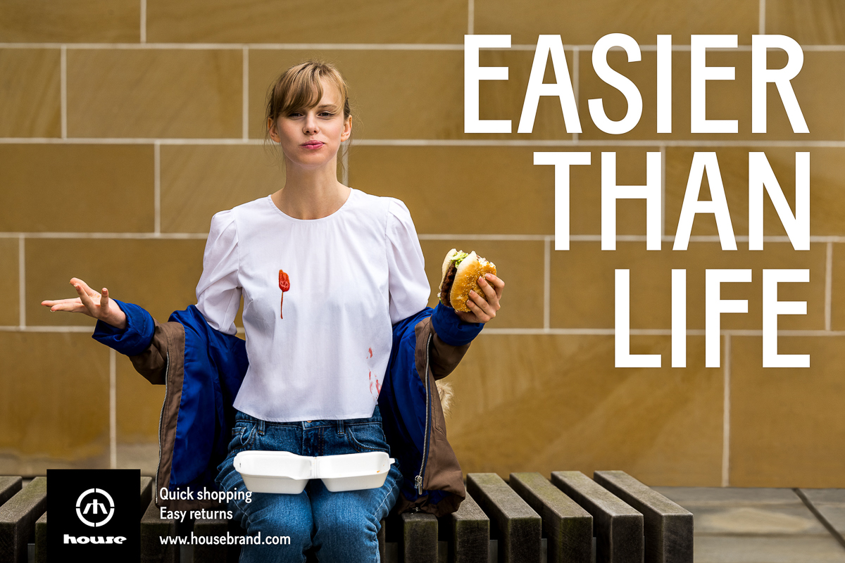 Najnowsza propozycja House stylistycznie kontynuuje estetykę reklamową zaczętą w nagrodzonej mieczem KTR kampanii House SS17 zaskakując innowacyjnym spojrzeniem na zakupy online.