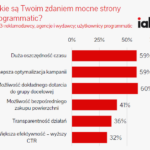 Raport analizuje aktualny stopień rozwoju programmatic w Polsce oraz wskazuje dalsze potencjalne kierunki rozwoju reklamy online. W technologii programmatic swoje reklamy kupuje już 89% reklamodawców, jednak jedynie 10% preferuje ten model sprzedaży, lokując w nim ponad 80% budżetu reklamowego display. W Polsce najpopularniejszym formatem reklamowym programmatic jest rectangle, a najciekawszym trendem jest coraz większa popularność modelu PMP: