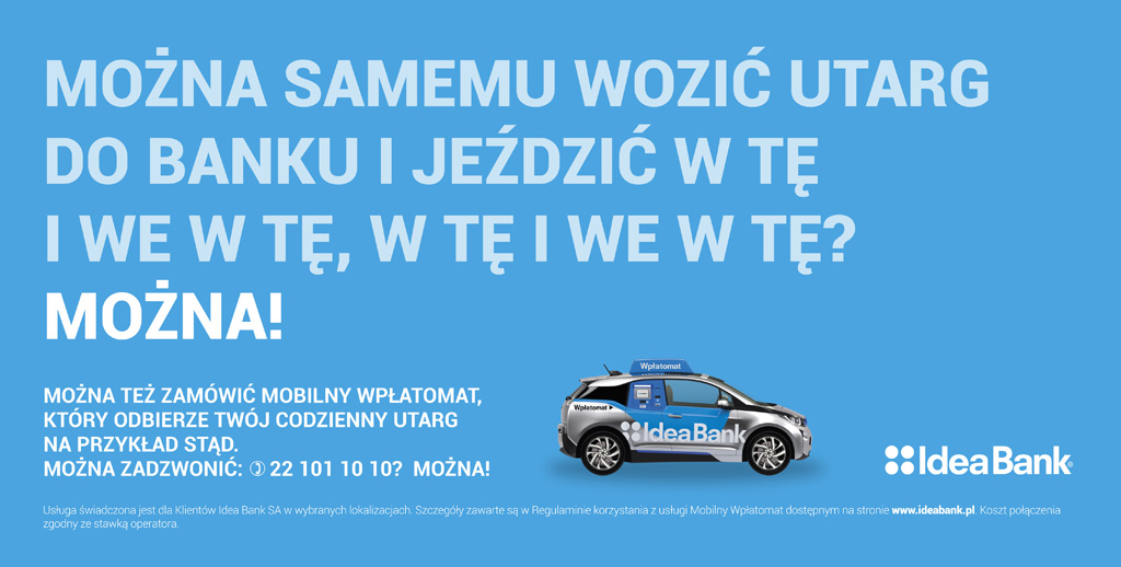 Przedsiębiorcy, będący klientami Idea Banku, mogą też korzystać z mobilnych wpłatomatów, specjalnie zaprojektowanych samochodów z wbudowanym bankomatem-wpłatomatem, które właściciel firmy może zamówić pod wskazany adres, jak taksówkę – za pomocą mobilnej aplikacji. Nowatorskie na skalę światową rozwiązania, które dostępne są na razie tylko w Warszawie, zwróciły już uwagę zagranicznych ekspertów. Bank chce teraz dotrzeć z nimi do potencjalnych użytkowników mieszkających w stolicy.