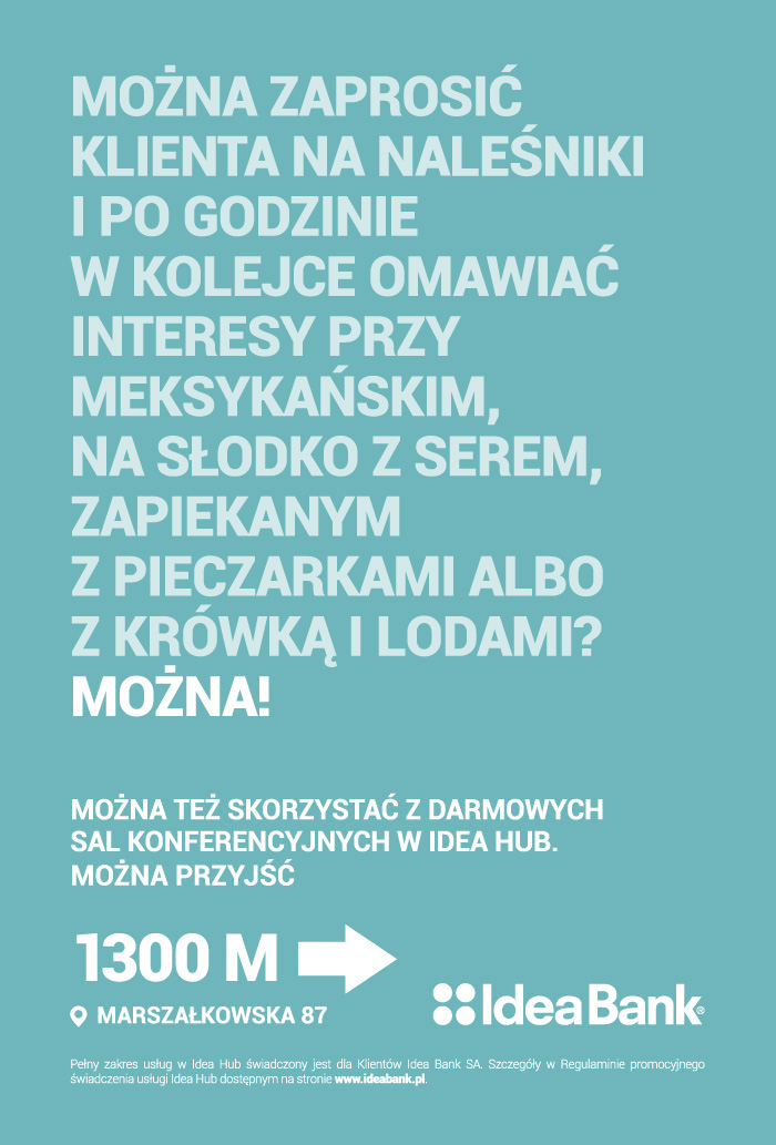 -Oferowane przez nas narzędzia są na tyle innowacyjne, że ciężko zakomunikować je w prosty i zrozumiały sposób. Postanowiliśmy więc zrobić to poprzez humorystyczny kontrast. Ze względu na to, że nasze rozwiązania dostępne są na razie tylko w Warszawie, postanowiliśmy wykorzystać do promocji outdoor, który pomoże nam trafić do mieszkańców stolicy, którzy prowadzą własny biznes lub marzą o jego założeniu – wyjaśnia Sławomir Gąsiorowski, dyrektor marketingu Idea Banku.
