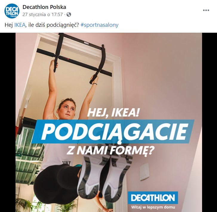 Czy na naszym rodzimym rynku szykuje się jakaś nowa interesująca współpraca? Od kilku dni IKEA i Decathon na swoich facebookowych profilach publikują posty z hashtagiem, w których nawzajem siebie zaczepiają. Na razie jednak nie zdradzają żadnych szczegółów, lecz już samymi zaczepkami podbijają serca swoich klientów.