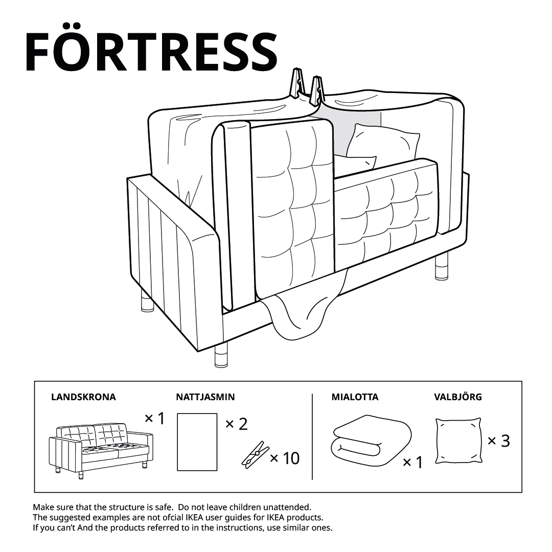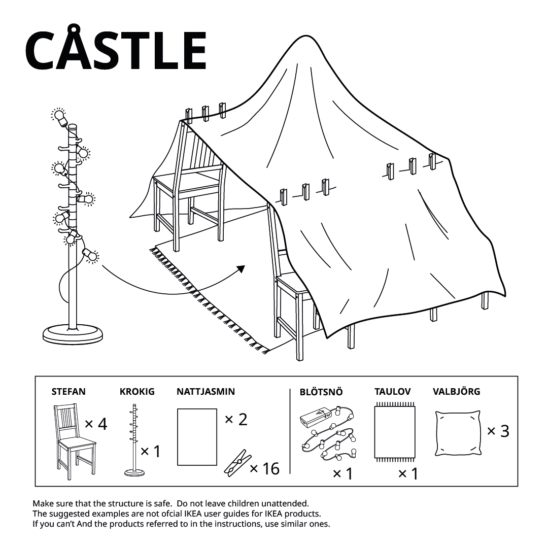 Szwedzka marka przygotowała sześć kreatywnych instrukcji na stworzenie z mebli oraz przedmiotów, które już posiadamy w swoich domach, prostych „schronów” lub też namiotów. Zabawa, którą każdy z nas z pewnością kojarzy ze swoich czasów dzieciństwa, niewątpliwie zapewni ciekawą rozrywkę wszystkich znudzonym przesiadywaniem w czterech kątach dzieciom, a u dorosłych wywoła nutkę nostalgii.