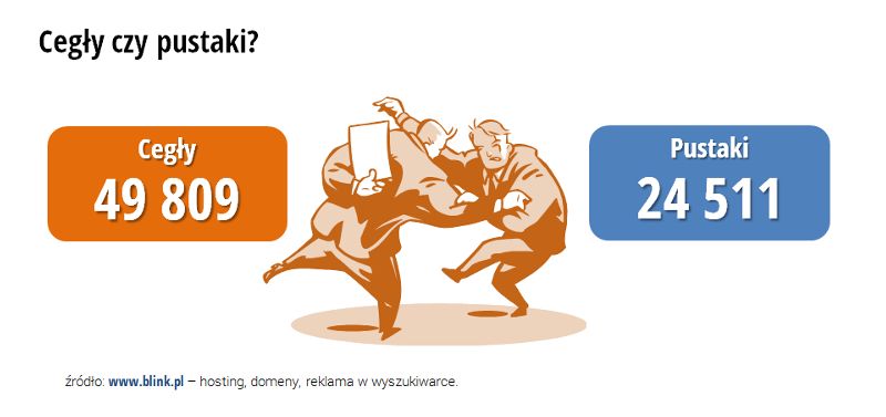 Kolejne miejsca przypadły słowom – „cegły” (blisko 50 tys. miesięcznych wyszukiań) oraz „pustaki”, których co miesiąc średnio poszukuje 24,5 tys. polskich klientów. Za kliknięcie w te reklamy zapłacimy kolejno 1,33 oraz 1,18 zł netto.