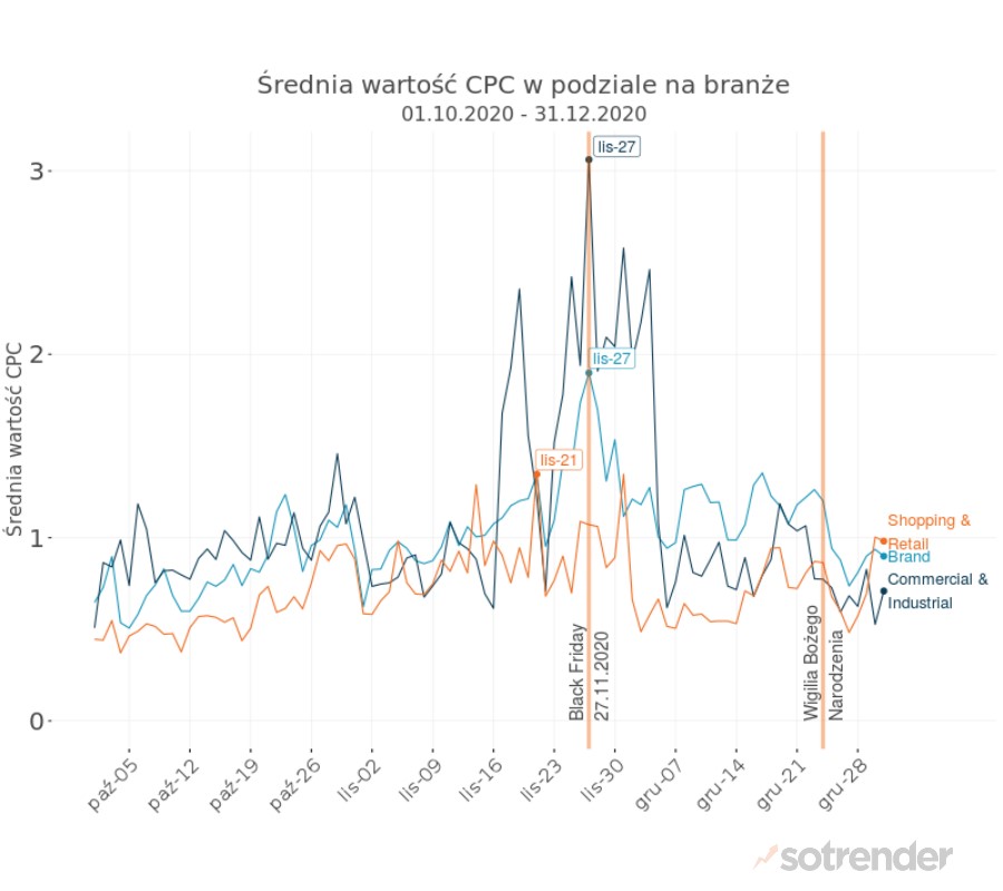 Kolejny duży wzrost zaobserwowaliśmy w Black Friday, kiedy średni CPC wynosił: