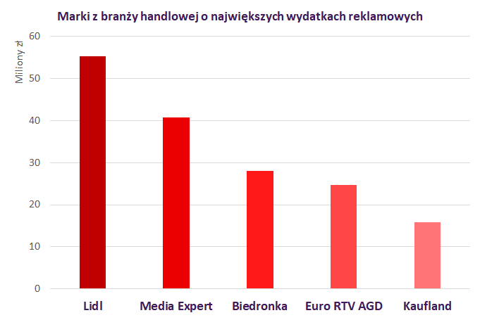 Nadal największym budżetem reklamowym może pochwalić się Lidl, który w czerwcu przeznaczył ponad 55 mln zł na promocję w mediach tradycyjnych. Na kolejnych miejscach znalazły się sklepy Media Expert, Biedronka, Euro RTV AGD oraz Kaufland.