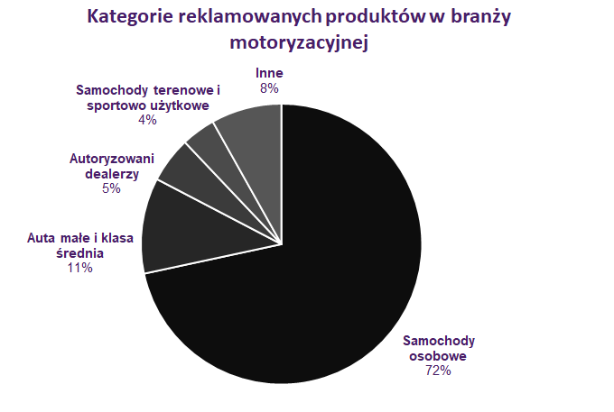 Jeśli chodzi o wydatki reklamowe przeznaczane na konkretne produkty w branży motoryzacyjnej, nadal największe udziały mają samochody osobowe (w lipcu 72 proc.). Na kolejnych miejscach znalazły się reklamy aut małych i klasy średniej, autoryzowanych dealerów oraz samochodów terenowych i sportowo-użytkowych.