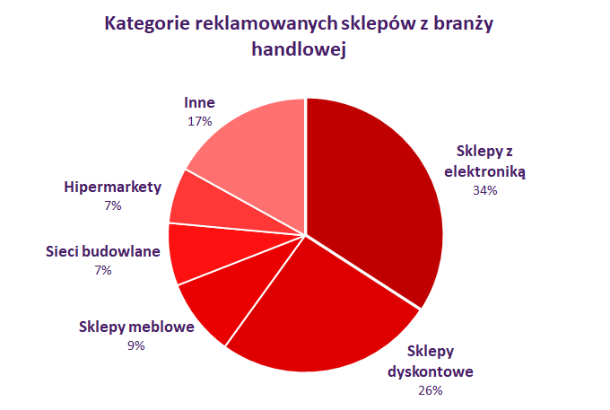 Wśród kategorii reklamowanych produktów w branży handlowej – oprócz sklepów z elektroniką (34 proc.) i dyskontów (26 proc.), które mogą pochwalić się dużymi budżetami reklamowymi, swoją pozycję umocniły także sklepy meblowe, sieci budowlane oraz hipermarkety.