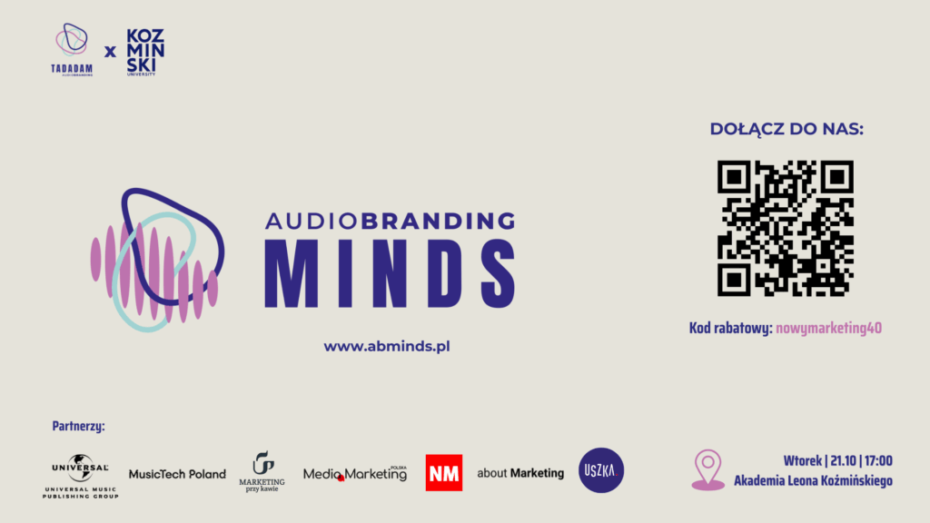 We wtorek, 21 października br. o godz. 17 w siedzibie Akademii Leona Koźmińskiego (Warszawa) odbędzie się konferencja Audio Branding Minds. To pierwszy w Polsce meetup poświęcony dźwiękowi w marketingu.