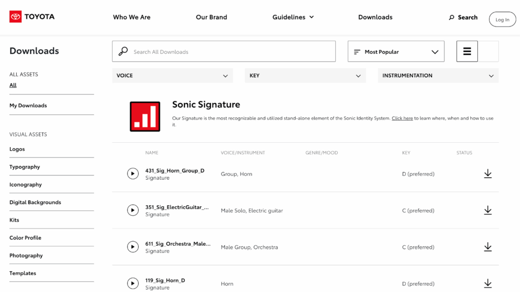 Jak zadbać o spójność wdrożenia w ogromnej, rozproszonej sieci? Toyota, mając świadomość liczebności swoich stakeholderów, udostępniła szczegółowe i przejrzyste zasady wykorzystania audio brandingu. W publicznie dostępnych materiałach w jasny sposób opisuje, jak i gdzie należy używać poszczególnych assetów. To proaktywne działanie sprawiło, że każdy partner biznesowy, niezależnie od lokalizacji, ma dostęp do jednolitych wytycznych, które ułatwiają prawidłową implementację. Co więcej, Toyota w swoich dokumentach wprost zachęca do kontaktu w przypadku problemów ze zrozumieniem zasad, budując poczucie wspólnej odpowiedzialności za wizerunek marki.