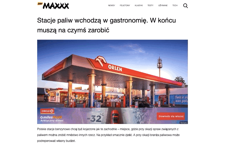 Nie tylko marki motoryzacyjne w branży automotive korzystają z In-Image Ads. Decydują się na to również stacje paliw. Pod koniec ubiegłego roku format ten wykorzystała w swoich działaniach świątecznych sieć stacji Circle K, prowadząc kampanię pod hasłem „Kawa za 1zł przy zakupie 35l paliwa”.