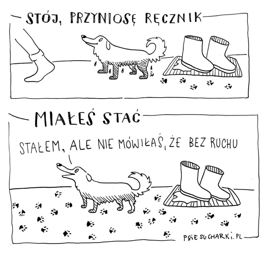 Bardzo ciężko odpowiedzieć na pytanie, jak dużo czasu zajmują mi Psie Sucharki. Czasem sporo, czasem bardzo dużo. Robię to już wiele lat, więc staram się dbać, by były dni, gdy nie ma mnie w zasięgu zawodowego internetu. Rysuję, piszę, moderuję, odpisuję na wiadomości od czytelników, rozmawiam z ekspertami, wymyślam treści – to wszystko moje zadania. Zewnętrzna firma prowadzi sklepik z sucharkowym merchem, bardzo bym sobie życzyła, żeby ten aspekt działalności był z mojej strony bezobsługowy.