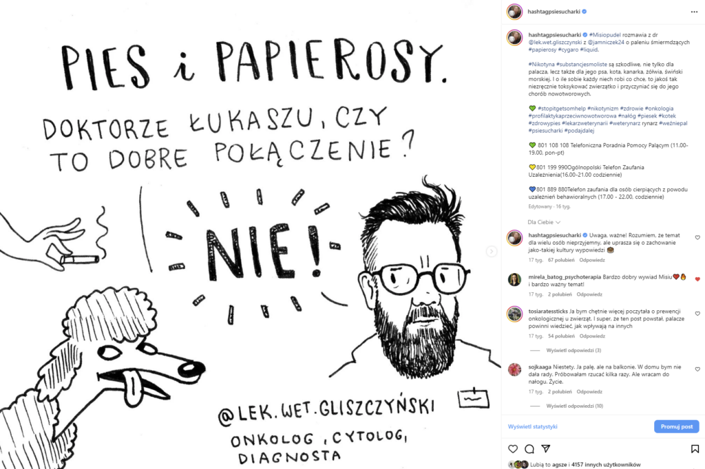 Bardzo dobrze wspominam współpracę z tymi markami, które mają świadomość, że przychodzą do mnie, bo podoba im się to, co robię i jak to robię, więc warto mi dać robić moją robotę – przykładowo cykl obrazków dla IKEA, współpraca z Mosqi.to w realizacji kampanii edukacyjno-wizerunkowej dla ING, czy współpraca z Piesotto x Samsung opierały się na zaufaniu zlecającego i dobrej komunikacji, powstały więc treści wartościowe i lubiane przez odbiorców. Ważne jest dla mnie, by realizacje były spójne tematycznie z moją działalnością – dobrostan zwierząt, opieka nad psami, odpowiedzialni opiekunowie.
