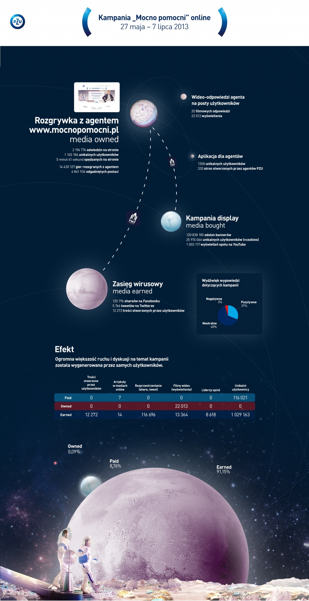 Kampania „Mocno Pomocni agenci PZU”, jak uzasadniali Przewodniczący jury konkursu, była jedną z najbardziej zauważalnych, innowacyjnych i ciekawych kampanii ubiegłego roku. Wyróżniła się szczególnie spośród innych zastosowaniem angażującej zabawy, która wciągnęła setki tysięcy ludzi do sprawdzania, jak dobrzy są agenci PZU. U podstaw jej sukcesu leży świetny pomysł wsparty nowoczesną technologią, która pozwoliła dotrzeć z przekazem do bardzo wielu potencjalnych klientów PZU. W ocenie jury ta kampania inspiruje i będzie inspirowała wszystkich do poszukiwania innowacyjnych metod zapraszania odbiorców do świata marki. Kampania zrealizowana z rozmachem, ale i dbałością o drobne szczegóły jest dobrym przykładem na to, jak ważna jest innowacja, szczególnie w branżach uznawanych za tradycyjne i mało atrakcyjne komunikacyjnie.