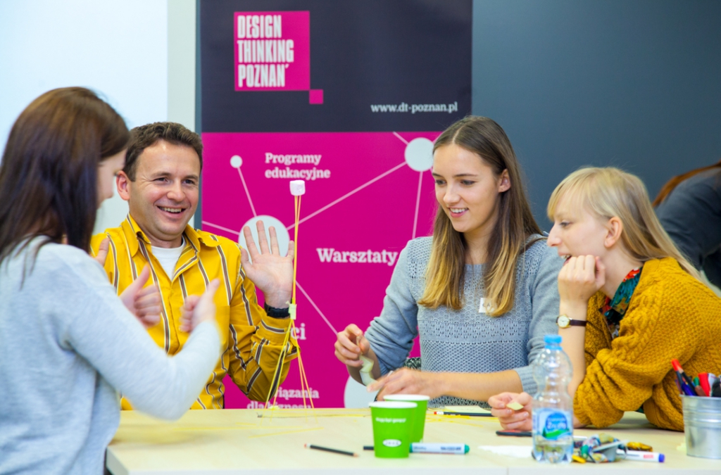 Pierwsze zajęcia przeznaczono na naukę technik kreatywnych oraz rozwój umiejętności pracy w grupie. Podzieleni na cztery zespoły uczestnicy uczyli się komunikować z pozostałymi członkami interdyscyplinarnych grup – najpierw poprzez trafną prezentację własnej osoby, później podczas wyzwań zespołowych. Następnie zapoznali się z design thinking – metodą projektowania praktykowaną na takich uczelniach jak Uniwersytet Stanforda czy MIT oraz w korporacjach takich jak T-Mobile, Raiffeisen czy LEGO. Zestaw jej narzędzi opiera się na pięciu etapach: empatii, diagnozy potrzeb, generowania pomysłów, prototypowania i testowania, w centrum tworzenia innowacji mając zawsze odbiorcę nowego produktu lub usługi.