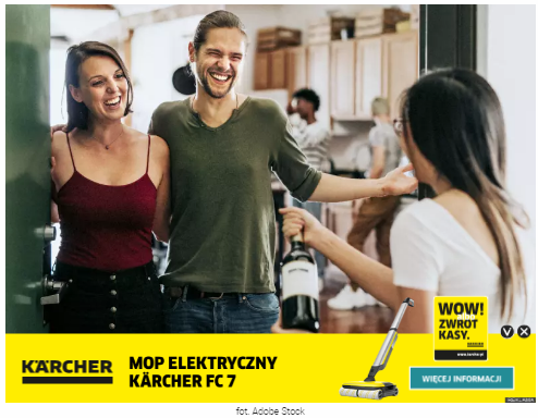 Od sierpnia ub. r. Kärcher wykorzystuje In-Image Ads w swoich kampaniach mających na celu m.in. promocję różnych produktów z oferty marki, czy też działaniach brandingowych. Przykładowo w dniach 10 sierpnia – 10 grudnia 2020 r. marka przeprowadziła dużą kampanię promującą gamę urządzeń domowych ze swojego portfolio. Natomiast druga kampania prowadzona od 10 października do 30 listopada ub. r. skupiła się na jednym produkcie, elektrycznym mopie Kärcher FC 7.