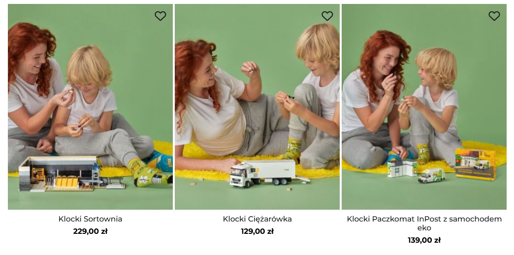 Wśród artykułów dla najmłodszych pojawiły się m.in. kolorowanki czy klocki do samodzielnego ułożenia Paczkomatu, sortowni paczek lub ciężarówki InPostu w wersji mini.