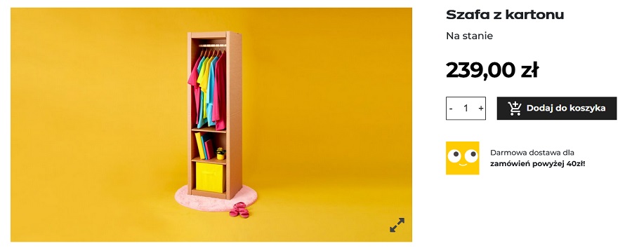 – Czy szafa o wysokości 180 cm może ważyć mniej niż zgrzewka wody mineralnej? Tak, jeśli jest wykonana z wytrzymałej… tektury falistej! Wtedy waży zaledwie 7 kg – czytamy w opisie produktu.