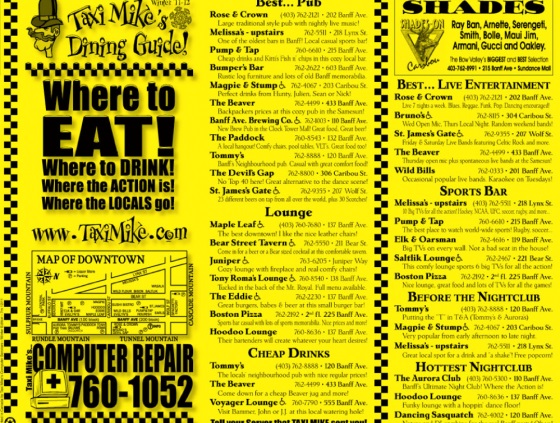 W przewodniku tym można znaleźć wszystkie restauracje i bary w okolicach prowincji Alberta. Tego typu działania nie mówią bezpośrednio o danej firmie, w tym przypadku taksówkarskiej, ale pokazują w czym taksówkarze mogą pomóc.