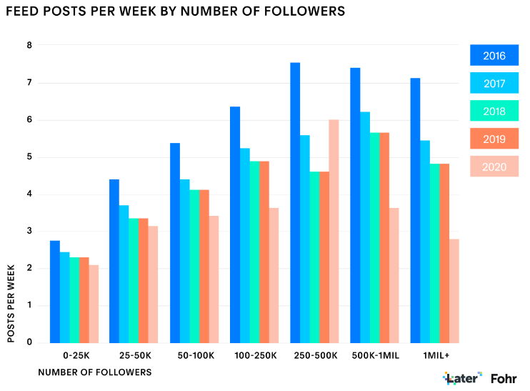 Wydawać by się mogło, że ta tendencja obejmie wszystkie konta, jednak – jak to bywa w naturze, są też wyjątki od reguły. Prognozuje się, że influencerzy mający około 250-500 tys. obserwujących zwiększą częstotliwość publikowania postów w 2020 roku.