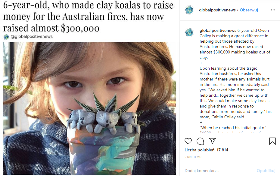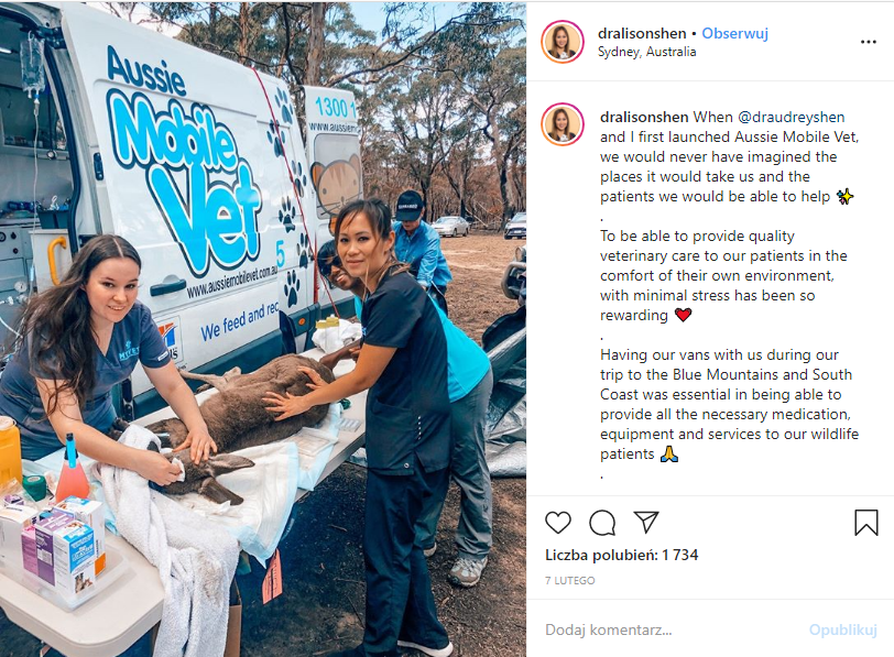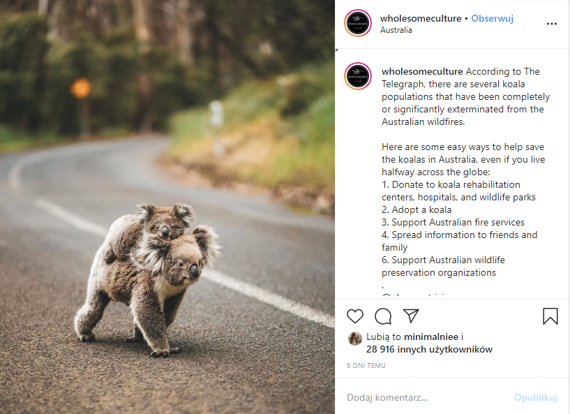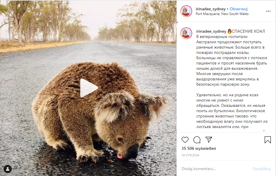 www.instagram.com/p/B8QembOH_o2/ dotyczący niesienia pomocy w Australii