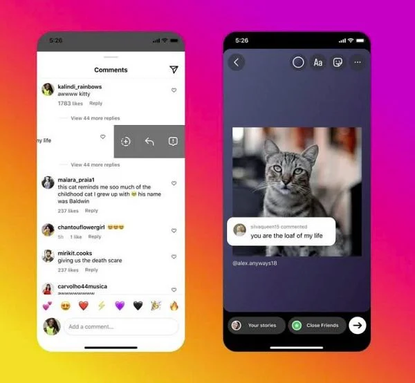 Możliwość udostępniania komentarzy będzie nowa dla Instagrama, ale to popularna opcja, z której korzystają np. użytkownicy TikToka (od 2020 roku). Celem nowej funkcjonalności jest przede wszystkim zwiększenie zaangażowania.