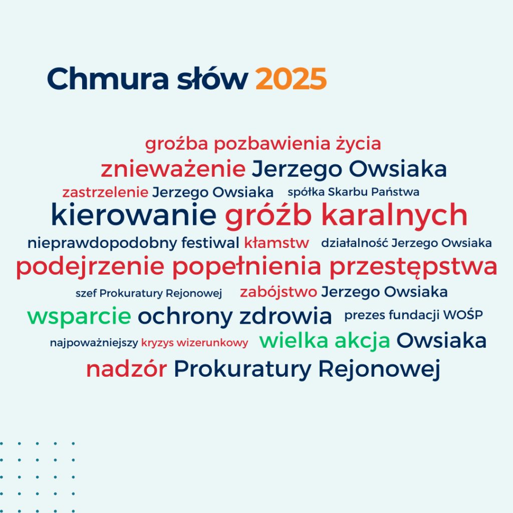 Wśród treści na temat Jerzego Owsiaka pojawiają się nie tylko niepochlebne opinie na jego temat, ale także groźby śmierci. Jak się jednak okazuje, obecność Owsiaka w mediach ma również wydźwięk pozytywny, do czego bez wątpienia przyczyniły się stacje telewizyjne i portale internetowe, które w styczniu 2025 roku wyemitowały w sumie największą liczbę materiałów na jego temat. Na podium pod tym względem znalazły się kolejno: