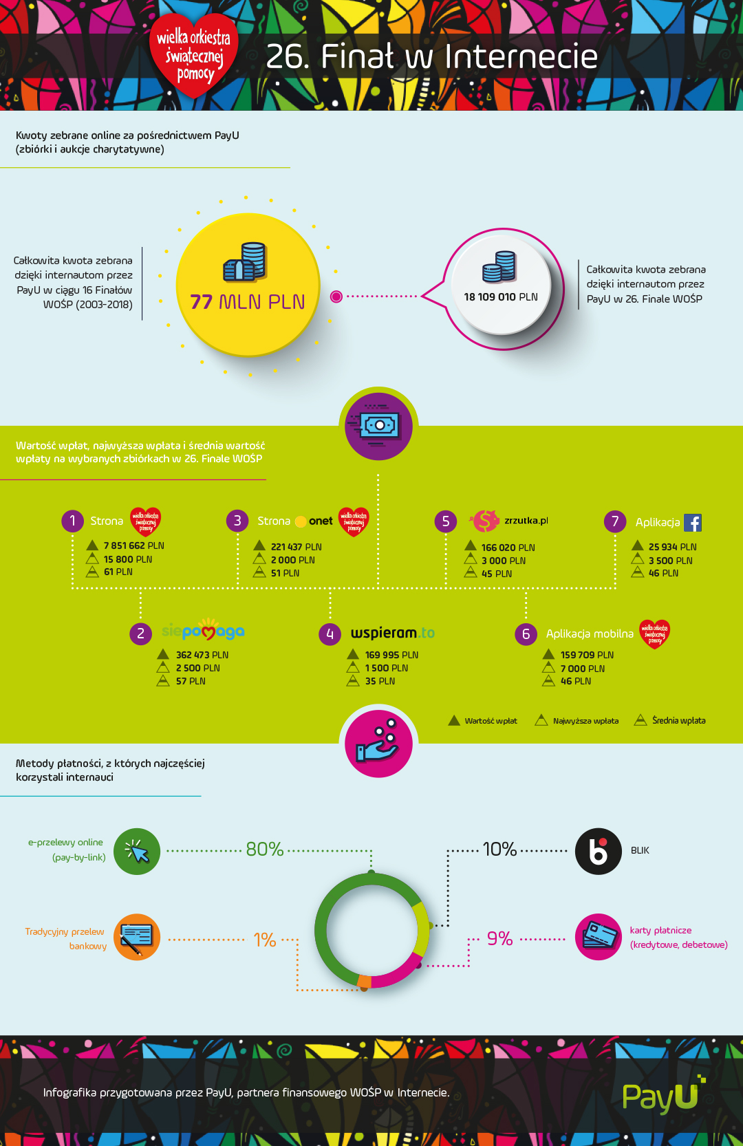 PayU podsumowuje najważniejsze dane z obsługiwanych w ramach współpracy z WOŚP podczas 26. Finału zbiórek online: