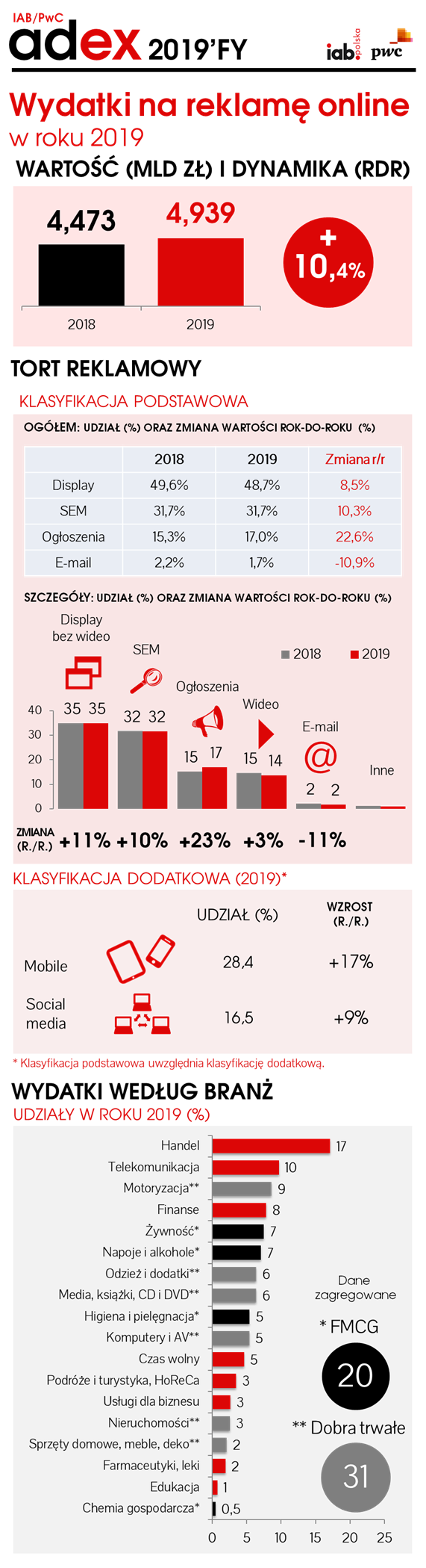 Internet liderem reklamy w roku 2019 (IAB Polska/PwC AdEx)