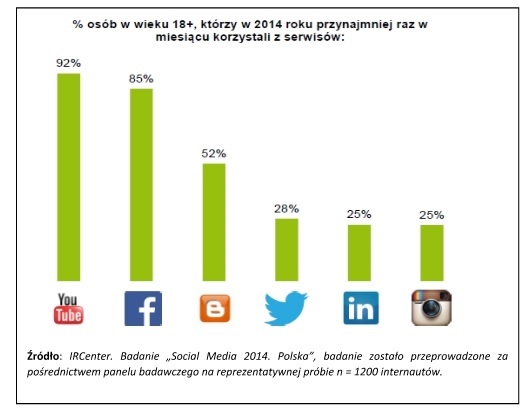 *Dane pochodzą ze zrealizowanego przez IRCenter badania „Social Media w Polsce. 2014”. Badanie ma charakter cykliczny i ma na celu pomiar trendów konsumpcji mediów cyfrowych w Polsce. Dane ilościowe zostały zebrane metodą CAWI za pośrednictwem panelu badawczego na reprezentatywnej próbie 1200 internautów. Część danych dotyczących wypowiedzi użytkowników została dostarczona przez SentiOne. Więcej informacji o badaniu oraz otwarta część raportu dostępna jest za darmo na stronie.