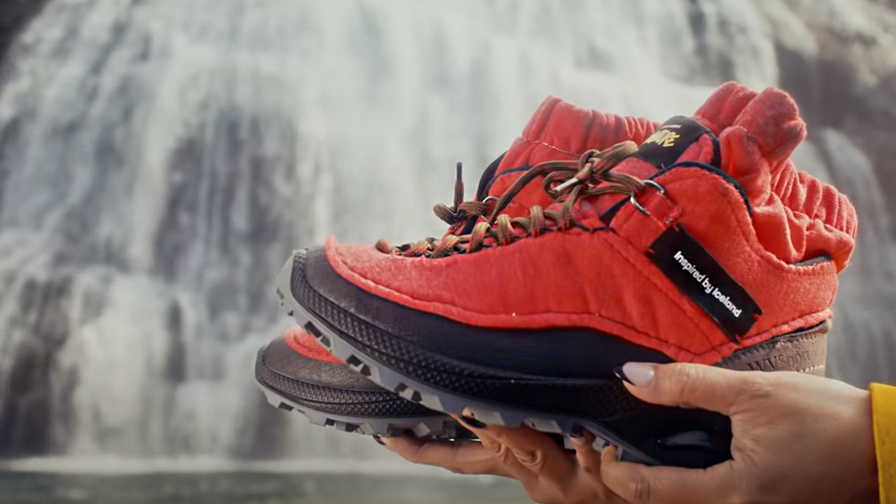 Dresowe buty są tworzone przy współpracy z Will Vegan i Ýr Þrastardóttir – projektantki i założycielki islandzkiej marki modowej Another Creation, która wykonuje obuwie z przyjaznych dla środowiska materiałów wegańskich. Dodatkowym atutem butów są wodoodporne cholewki, które mają ułatwić zwiedzanie terenów obfitujących w wodospady. Wszelkie pozostałości materiału ze spodni dresowych zostaną przerobione na torbę.
