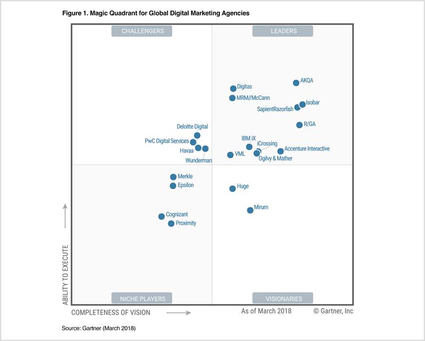 Jako lider agencja Isobar zadebiutowała w Magic Quadrant w 2014 roku. Kolejne wyróżnienie w tym prestiżowym raporcie jest uznaniem zaangażowania firmy w konsekwentne kształtowanie zmian wśród marek i w życiu konsumentów oraz wyznaczanie trendów we współczesnym marketingu cyfrowym.