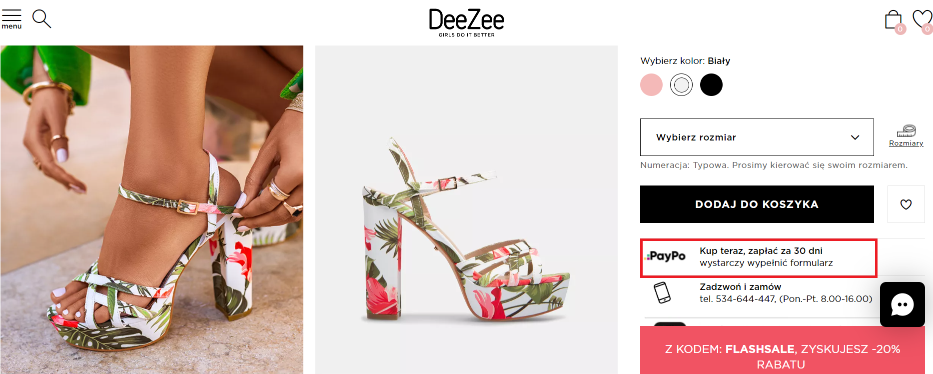 Nie zapominaj też o stronie głównej, bo to od niej często Twoi klienci zaczynają zakupy. Wykorzystaj bannery promocyjne w headerze strony, na których przedstawisz opcję “Kup teraz, zapłać za 30 dni”. Warto z niej przekierować do dedykowanego landig page dla usługi PayPo lub innej podstrony, na której krok po kroku tłumaczysz, jak działa ta metoda płatności. Podobne bannery możesz wykorzystywać również na podstronach kategorii produktów – wszystko zależy od tego, jak zbudowany jest Twój sklep.