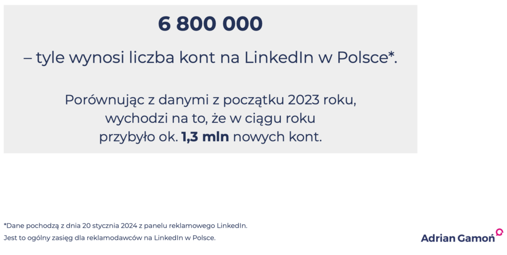 W 2023 roku liczba kont na LinkedInie wzrosła (globalnie) o 100 milionów – to największy roczny przyrost w historii tej platformy. Sytuacja w Polsce również wygląda bardzo interesująco: ubiegły rok przyniósł LinkedInowi aż 1,3 miliona nowych użytkowników z naszego kraju. Mimo to, wciąż niechętnie wykorzystujemy to medium w celu budowy marki osobistej.
