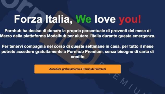 Także PornHub zdecydował się zareagować na szerzącą się pandemię koronawirusa. W celu wsparcia Włochów, portal przyłączył się do apelu o pozostawaniu w domach i zaoferował wszystkim zainteresowanym z Włoch darmowe konta premium na miesiąc z możliwością ich założenia bez podpinania karty płatniczej.
